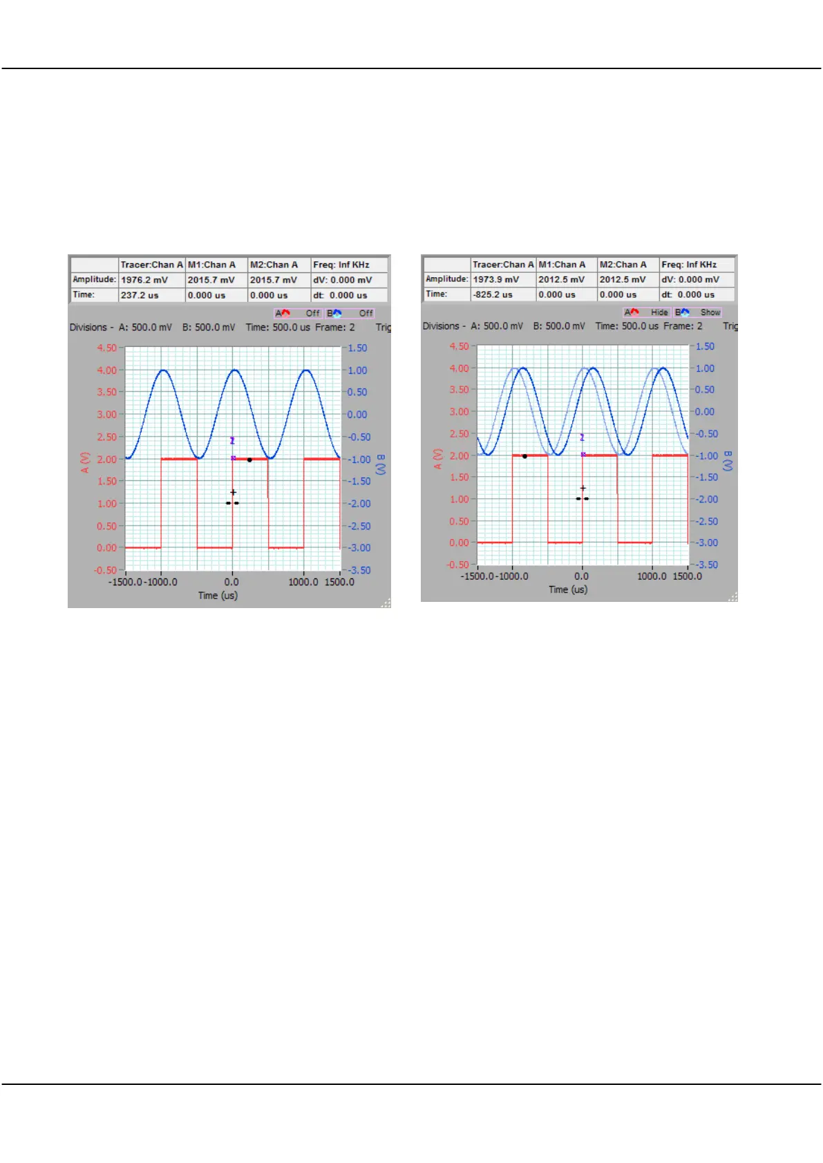 In these example plots we have used two signal sources of very nearly the same 1 kHz frequency. If we trigger