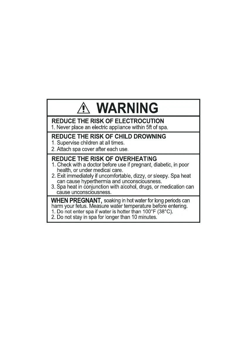 to all users of the hot tub, to alert them of the safety rules and warnings.