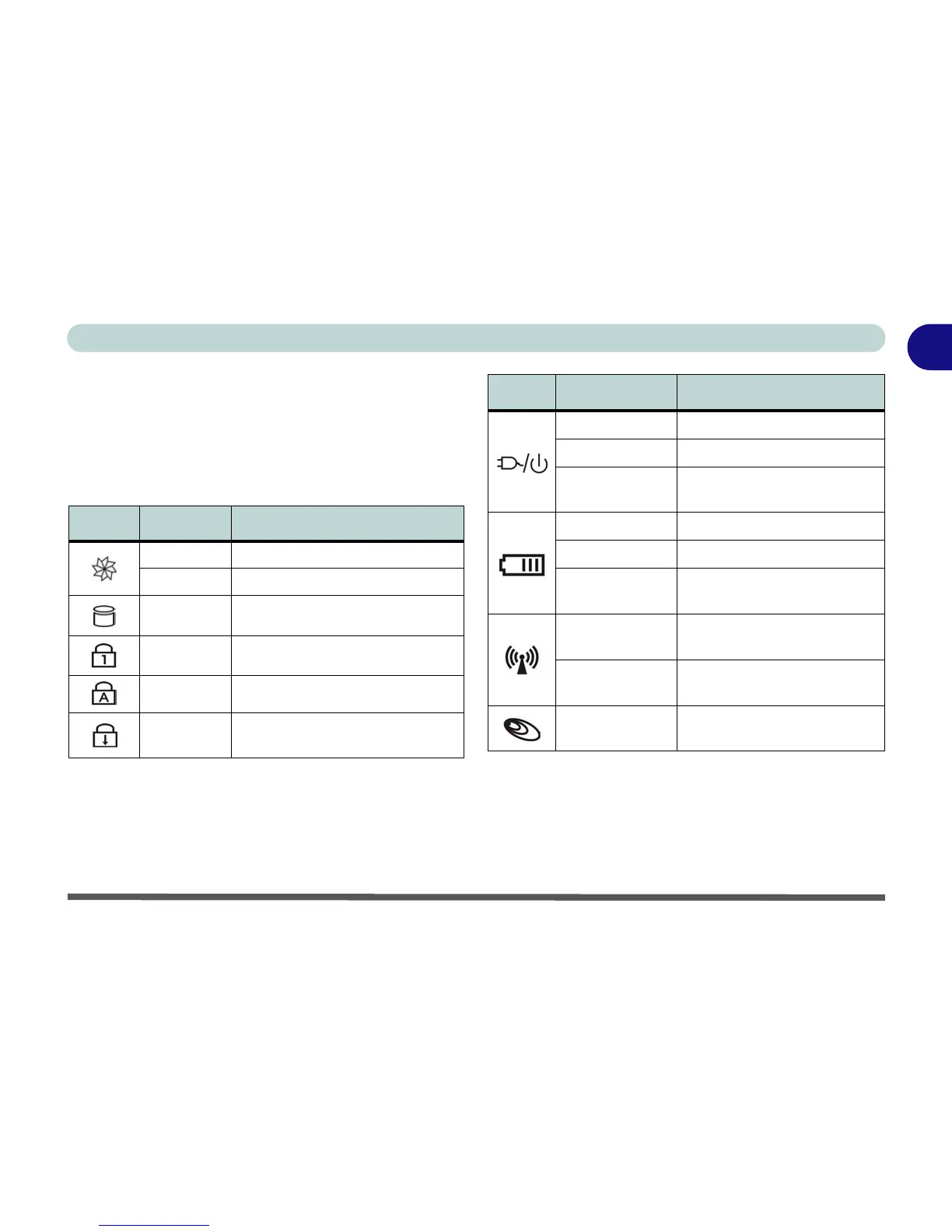 Table 1 - 2 - LED Status Indicators