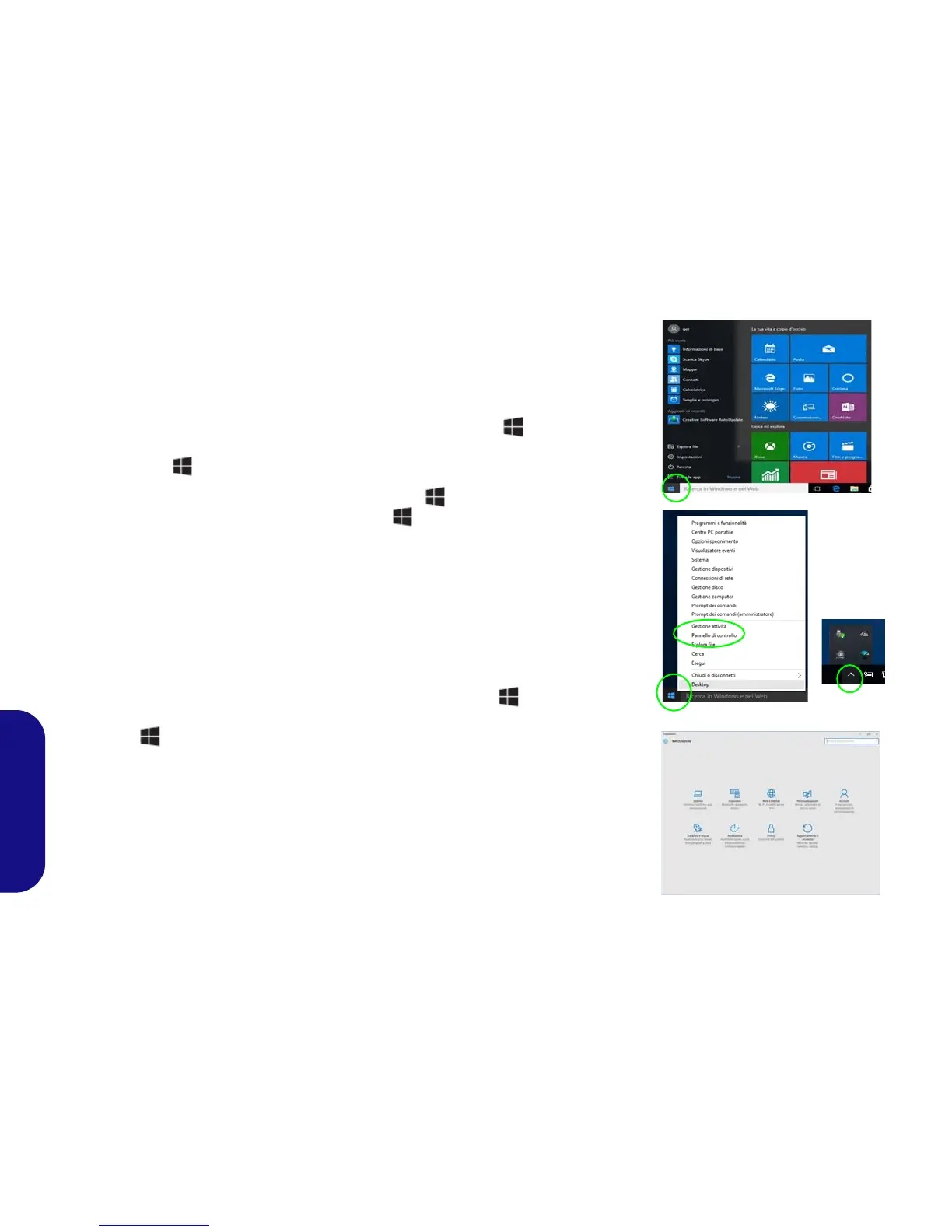 Figura 8 - Menu Start, Menu contestuale, Barra delle applicazioni, Pannello di control-