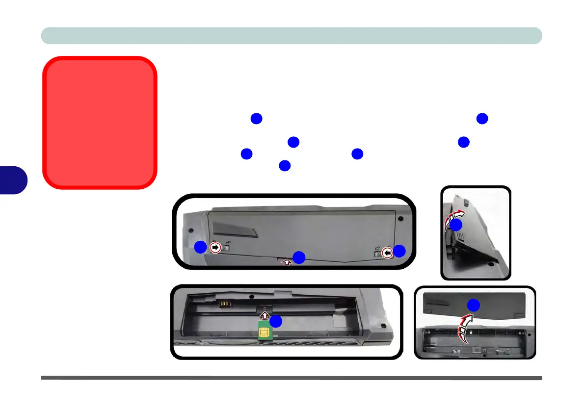3. While holding the latch in place, pull the battery up at point