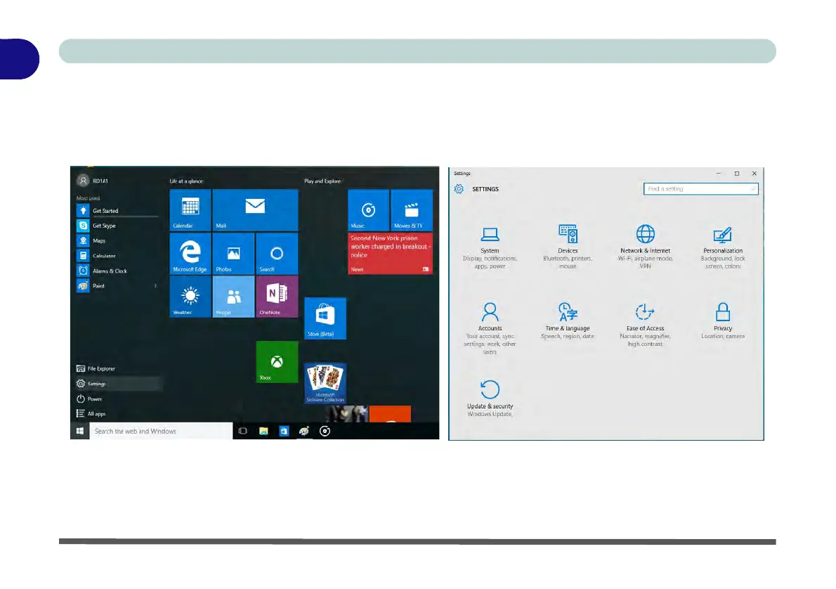 The Settings item in the Start Menu (and also as an App) gives you quick access to a number of system settings