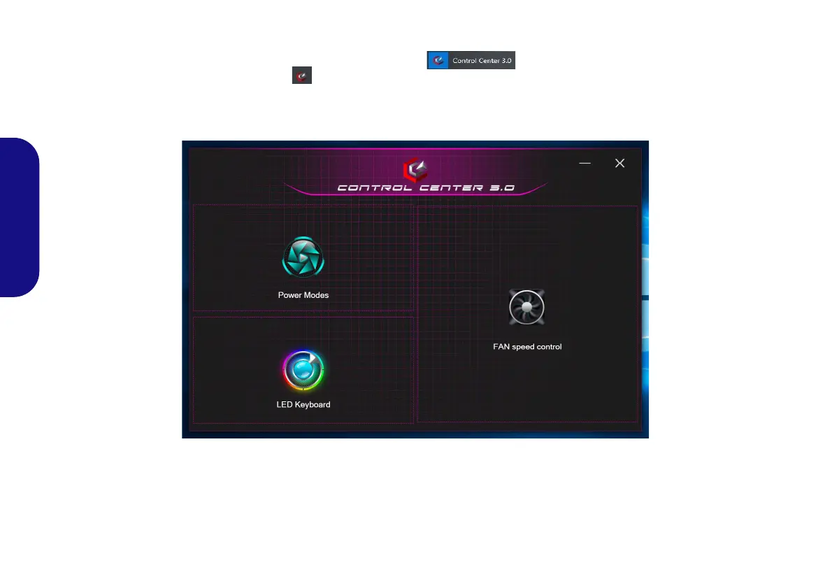 öffnen. Das Control Center bietet einen schnellen Zugriff auf die Leistungsmodi, die Lüfter Einstellungen und die