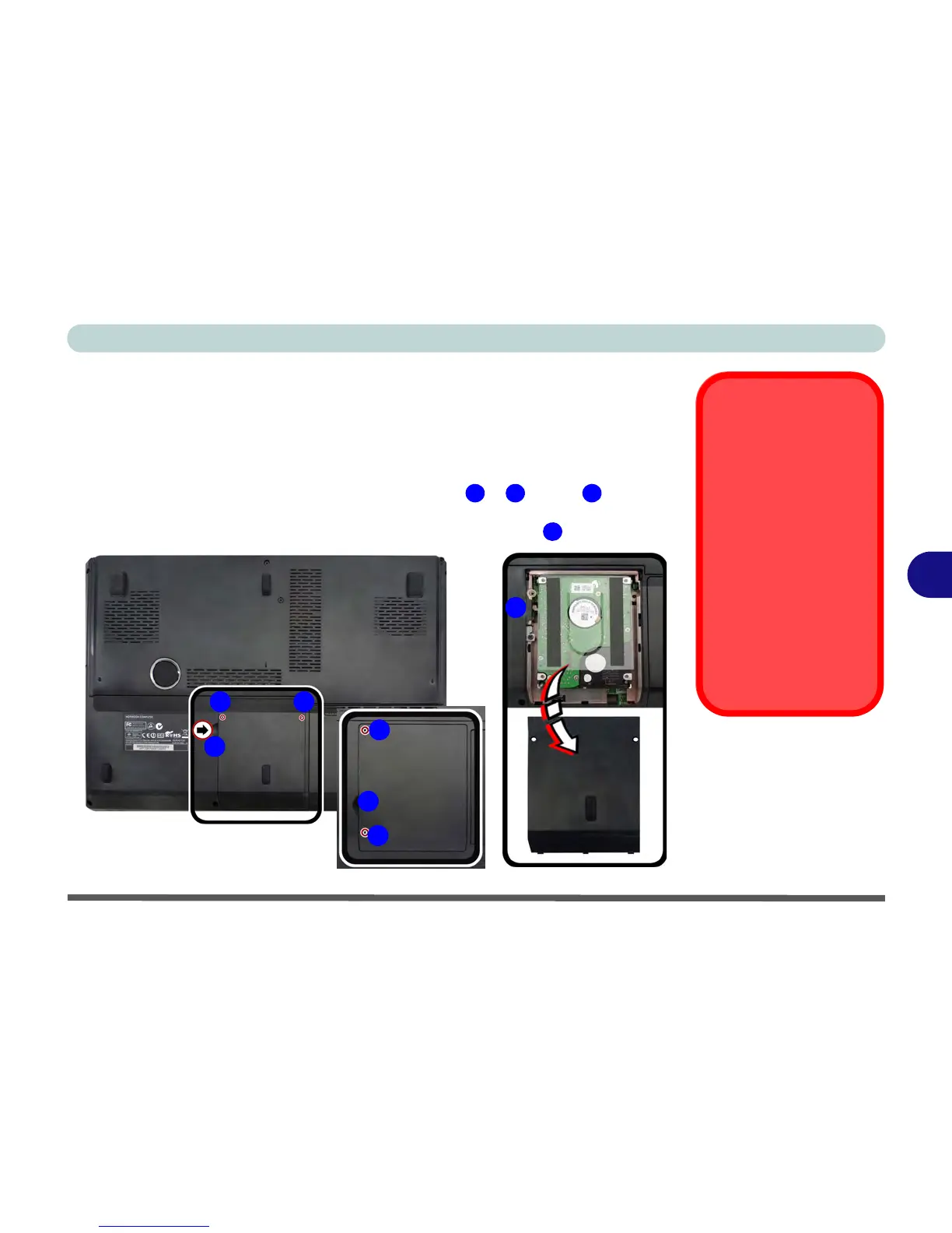 2. Locate the hard disk bay cover and remove screws & (screw is located