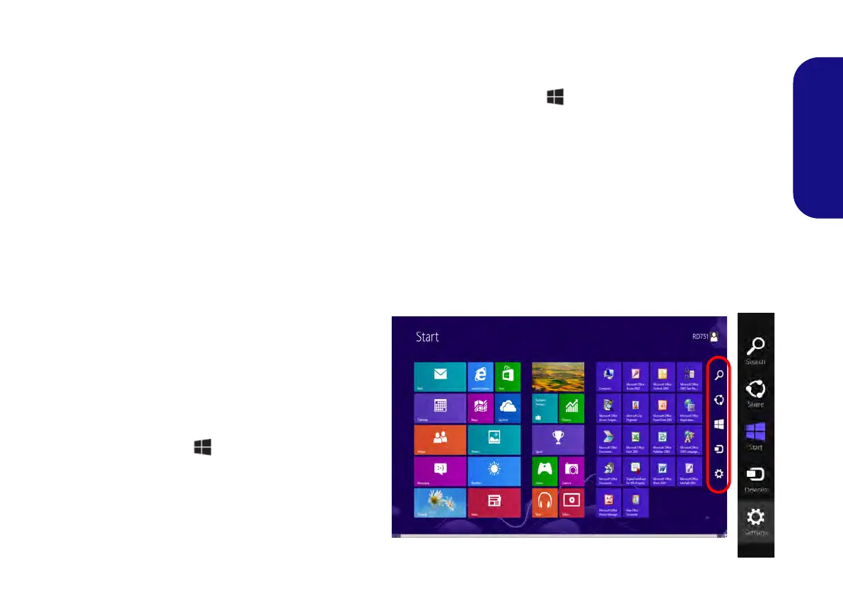 In many instances throughout this manual you will see an instruction to access the notification area of the Desktop task-
