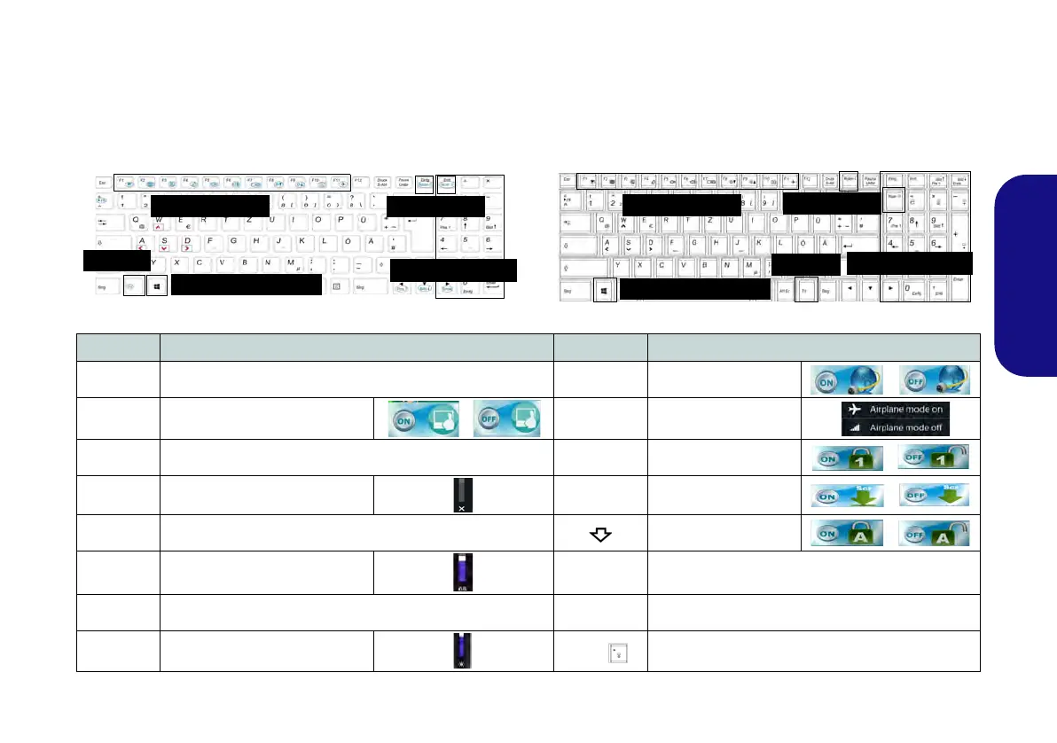 umschalten können. Wenn die Funktionstasten (F1 - F11) gleichzeitig mit der Fn-Taste gedrückt werden, funktionieren sie