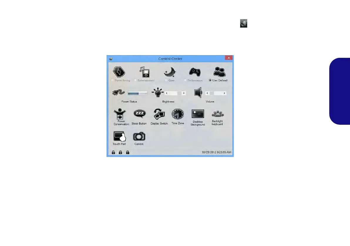 te um das Control Center (Steuerzentrum) ein-/auszuschalten in der Windows Desktop-Anwendung (nicht Startbild-
