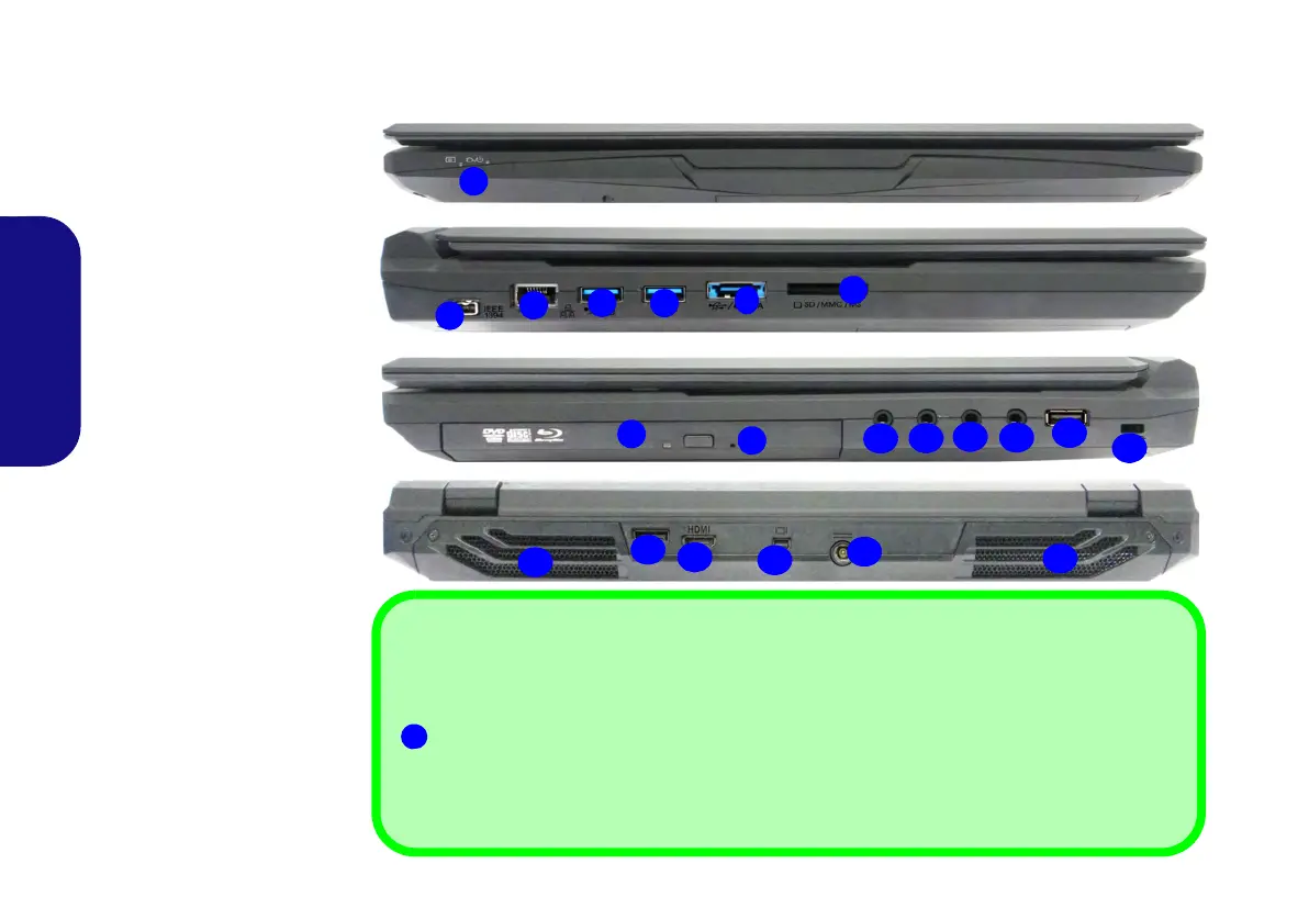 Die USB 3.0 Anschlüsse sind blau. Die Datenübertragung ist bei USB 3.0 viel schneller als bei USB