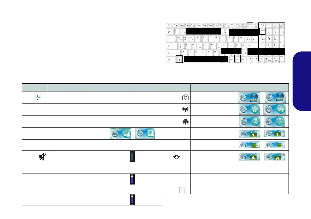 Fn + F7 Ändern der Anzeigeeinstellungen (siehe Seite 65)
