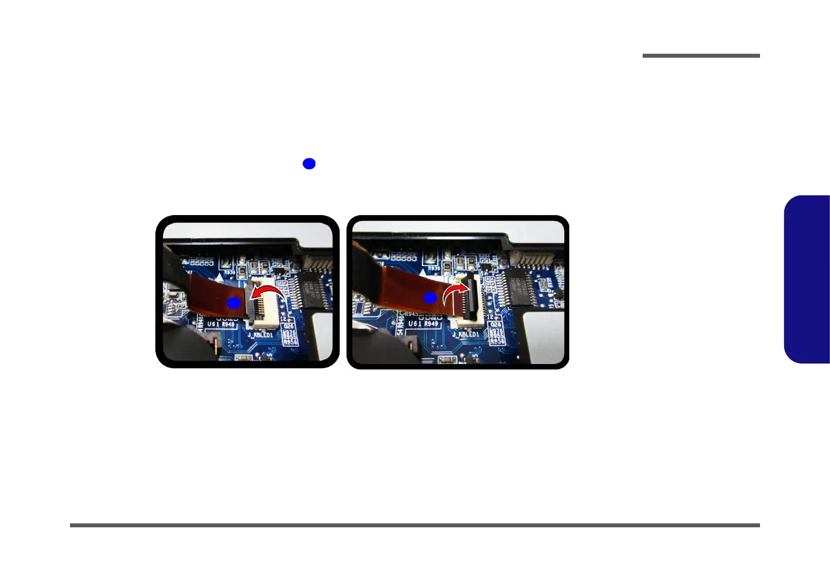 11. When reconnecting the keyboard LED cable , insert the cable so that the gold colored contact is facing upwards