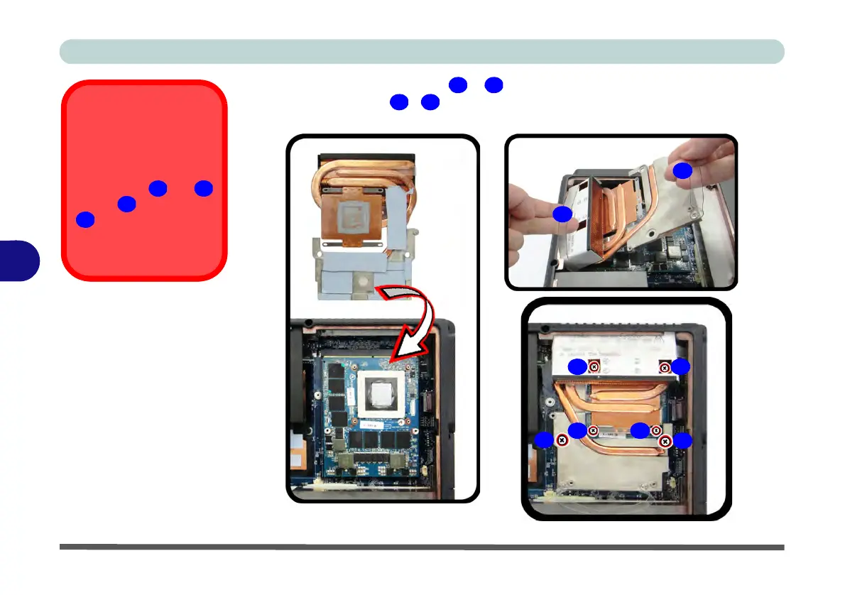 9. Secure the screws - in the order indicated on the heat sink unit label