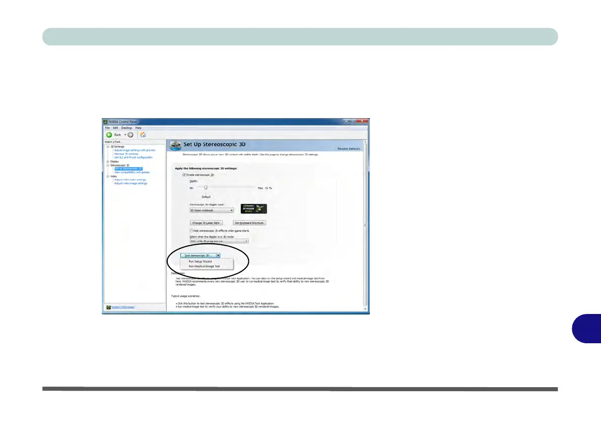6. Select the drop-down menu at the bottom of the screen to Test stereoscopic 3D.