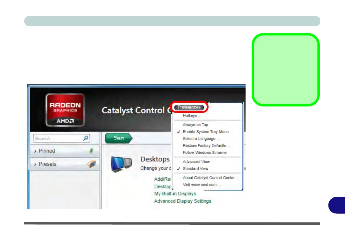 The Preferences button in the Catalyst™ Control Center menu allows you to con-