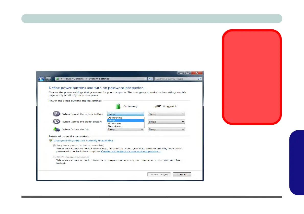 (Fn + F4 key combo) and closed lid may be set to send the computer in to a power-
