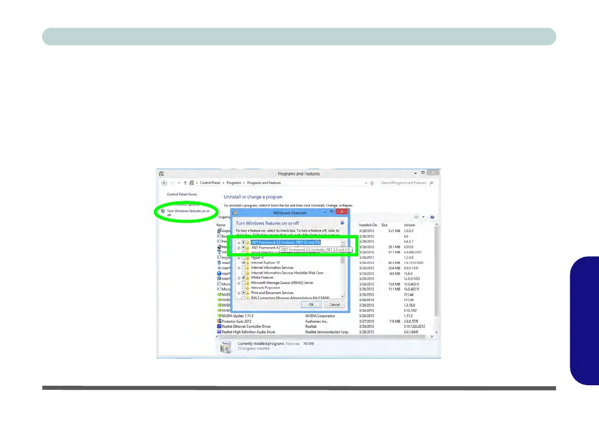 Enabling the .NET Framework 3.5 in the Windows Control Panel