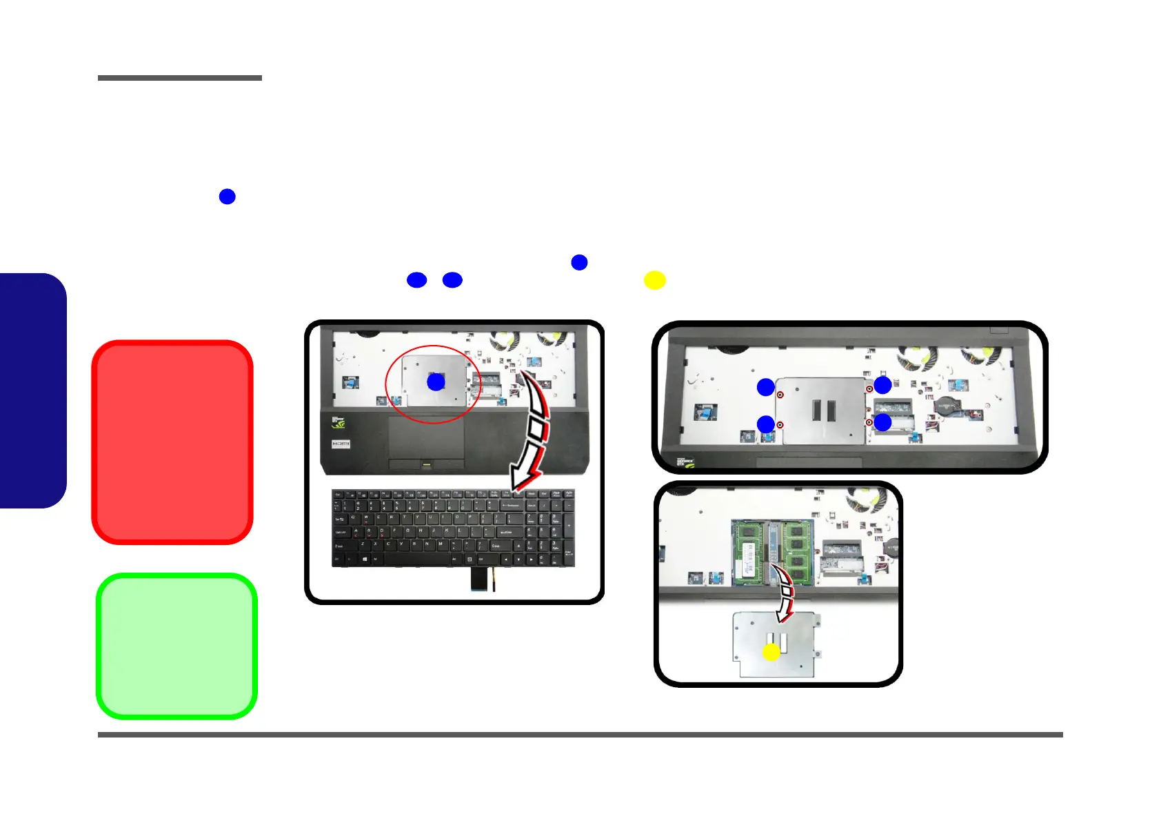 1. Turn off the computer, turn it over, remove the keyboard (page 2 - 5).