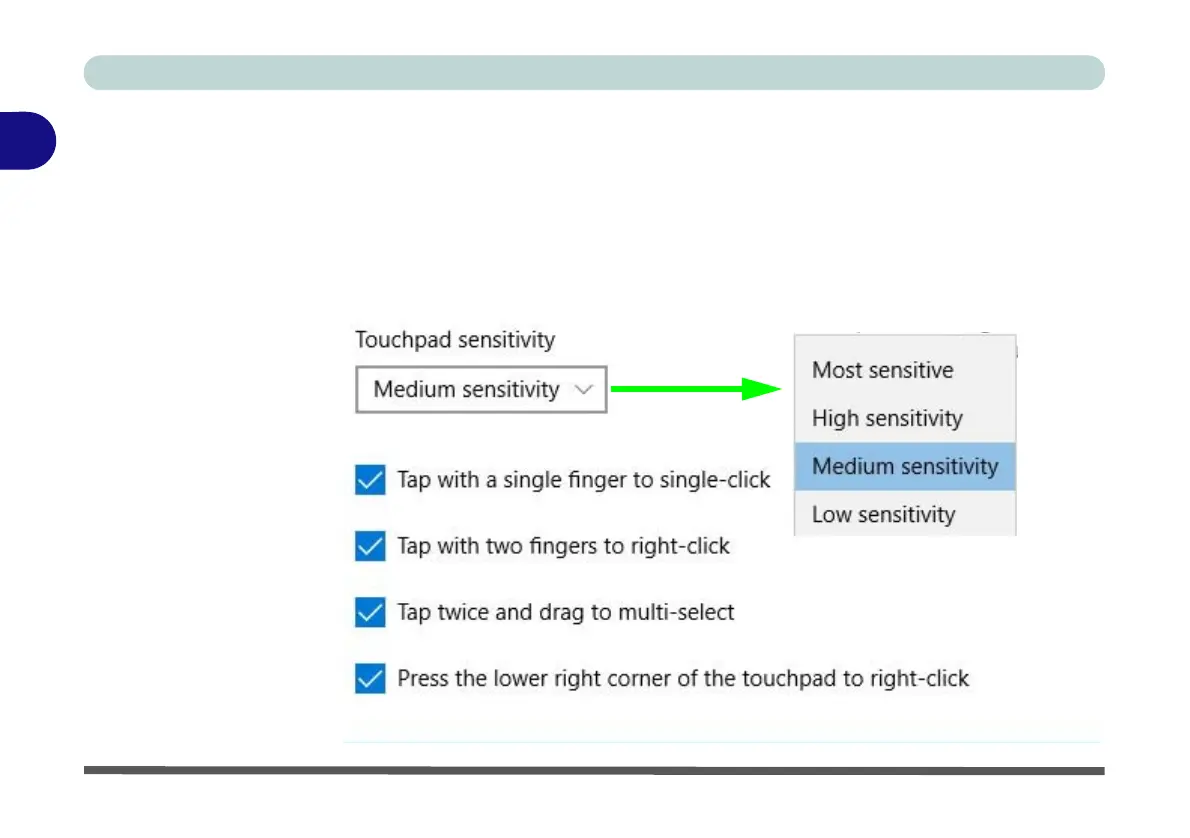 The Touchpad Sensitivity feature helps prevent recognizing taps on the pad by ac-