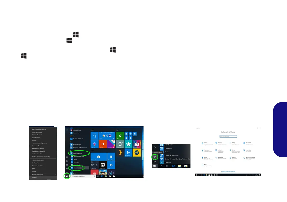Figura 16 - Menú Inicio, Menú contextual, Barra de tareas, Panel de Control y Configuración