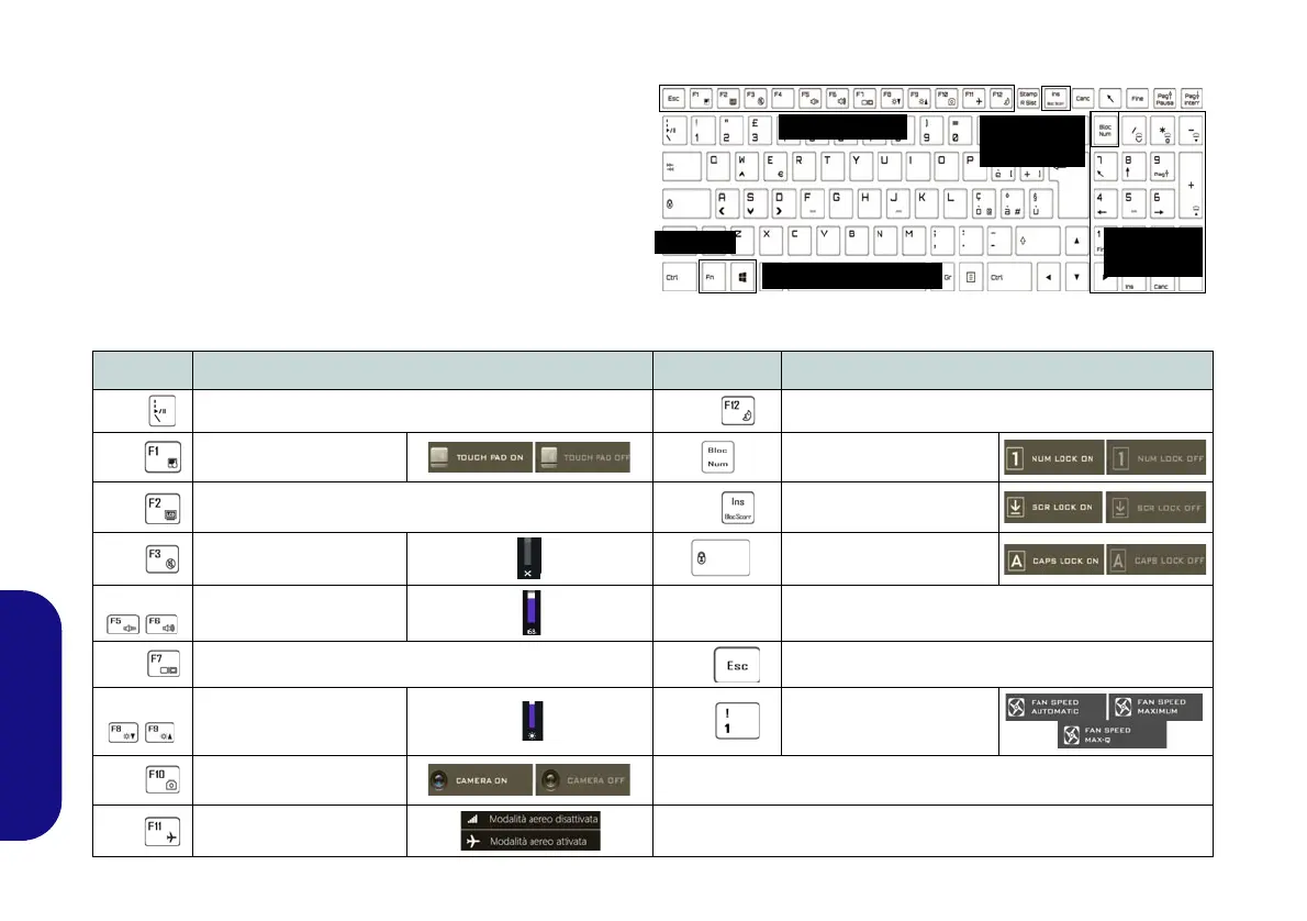 Tasti Tasti funzione e indicatori visivi Tasti Funzione/indicatori visivi