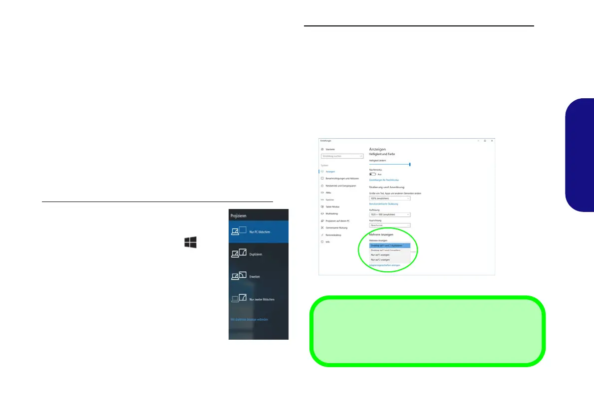 Konfiguration der Anzeige mit dem Projizieren-Menü: