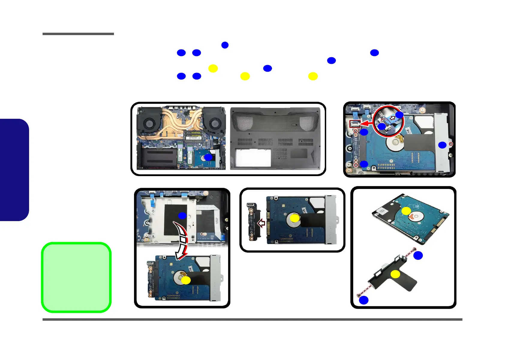 9. Reverse the process to install a new hard disk (do not forget to carefully reinsert the bottom case in reverse order