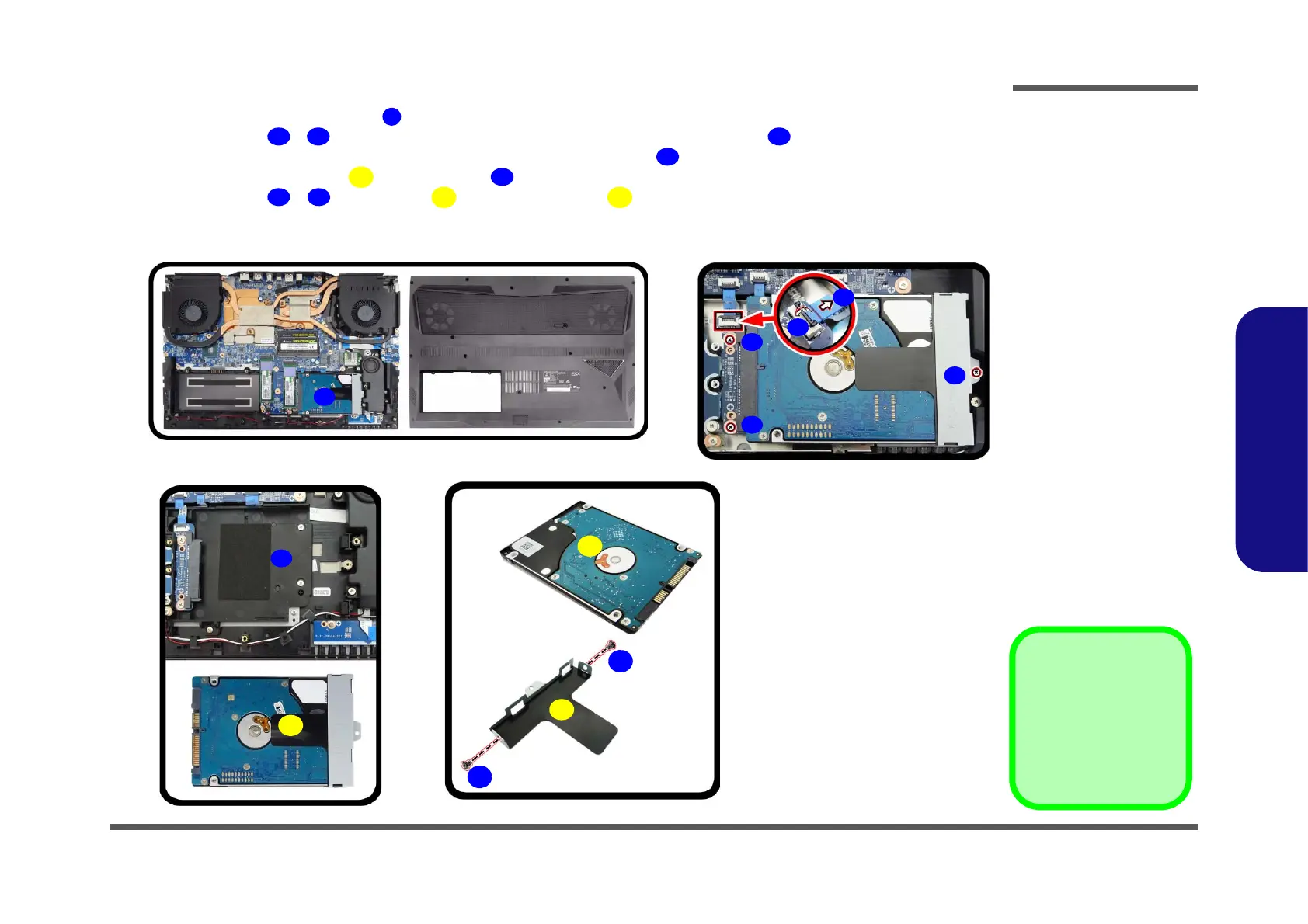 9. Reverse the process to install a new hard disk (do not forget to carefully reinsert the bottom case in reverse order