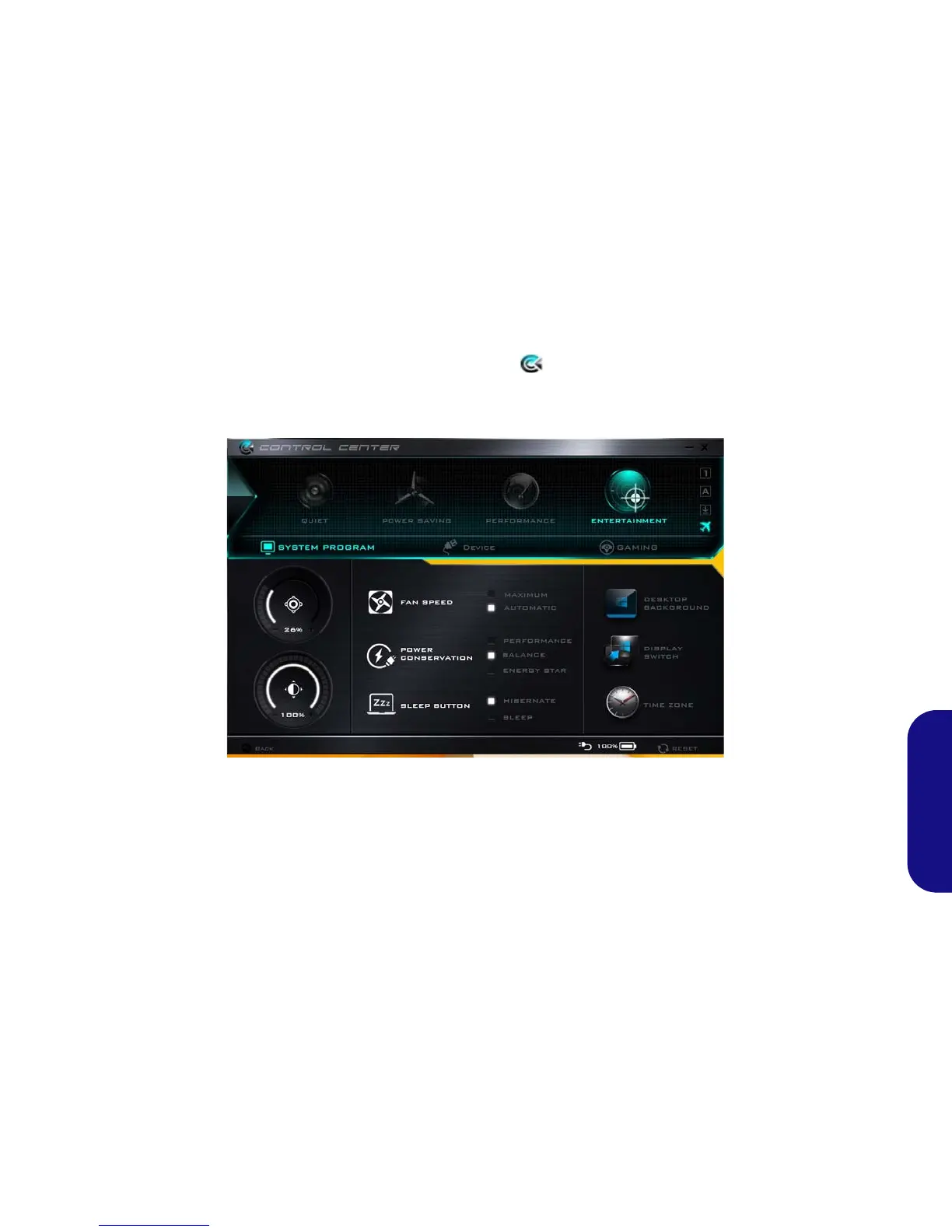 Cliccare l'icona Control Center per alternare la funzione appropriata, oppure tenere premuto il pulsante del mouse e spostare