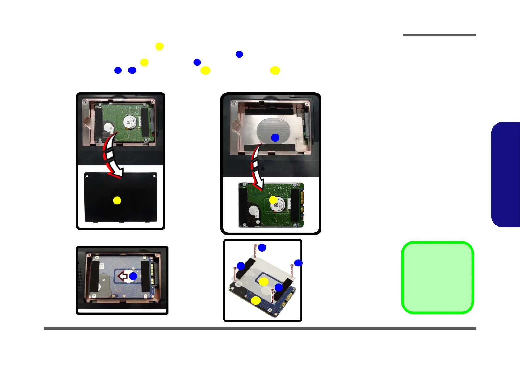 7. Reverse the process to install a new hard disk (do not forget to replace all the screws and covers).