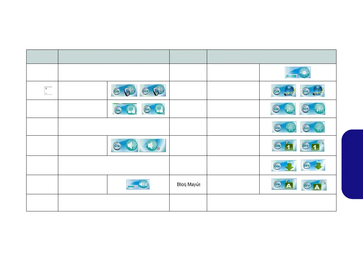 Teclas Función/indicadores visuales Teclas Función/indicadores visuales