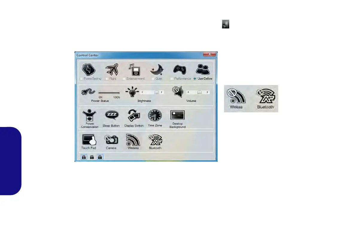Haga clic en cualquier botón para activar o desactivar cualquiera de los módulos (p.ej. Touchpad, Cámara). Haga clic en