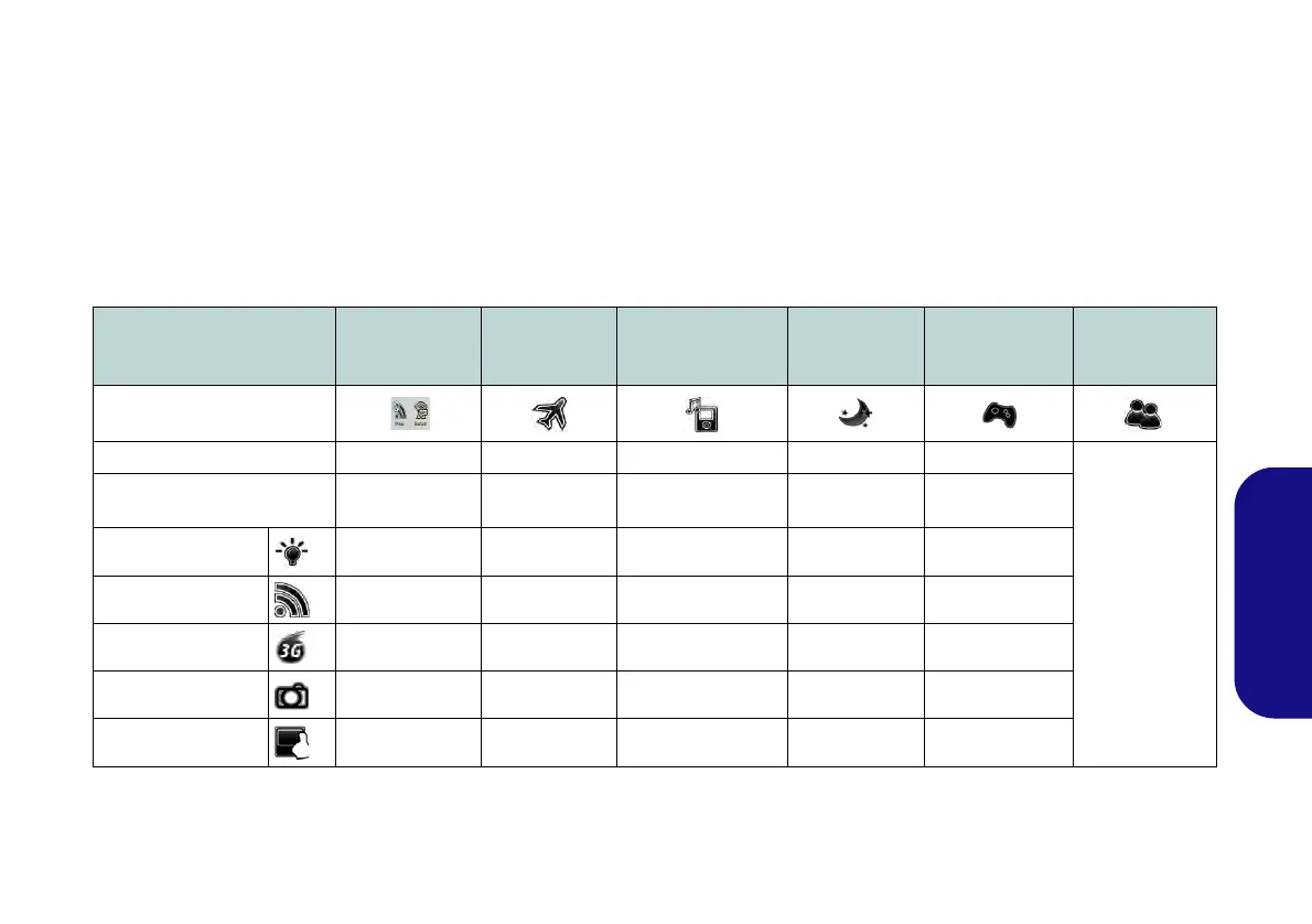 control). Cada modo de energía afecta al estado de energía de los módulos (es decir, WLAN, 3G o cámara), el brillo de la