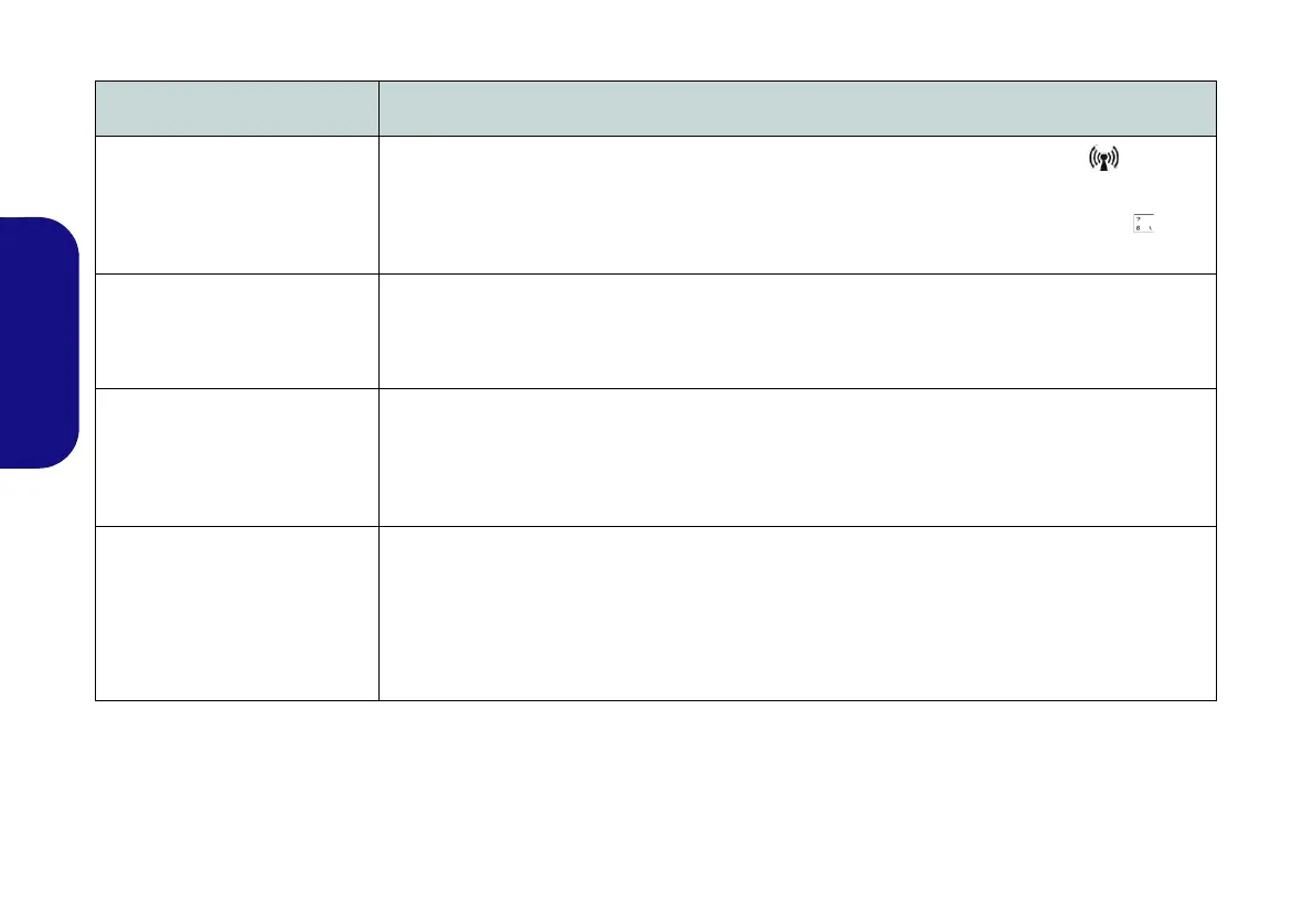 Funktionstastenanzeige, ob das WLAN/Bluetooth/3G-Modul ein- oder ausgeschaltet ist (siehe