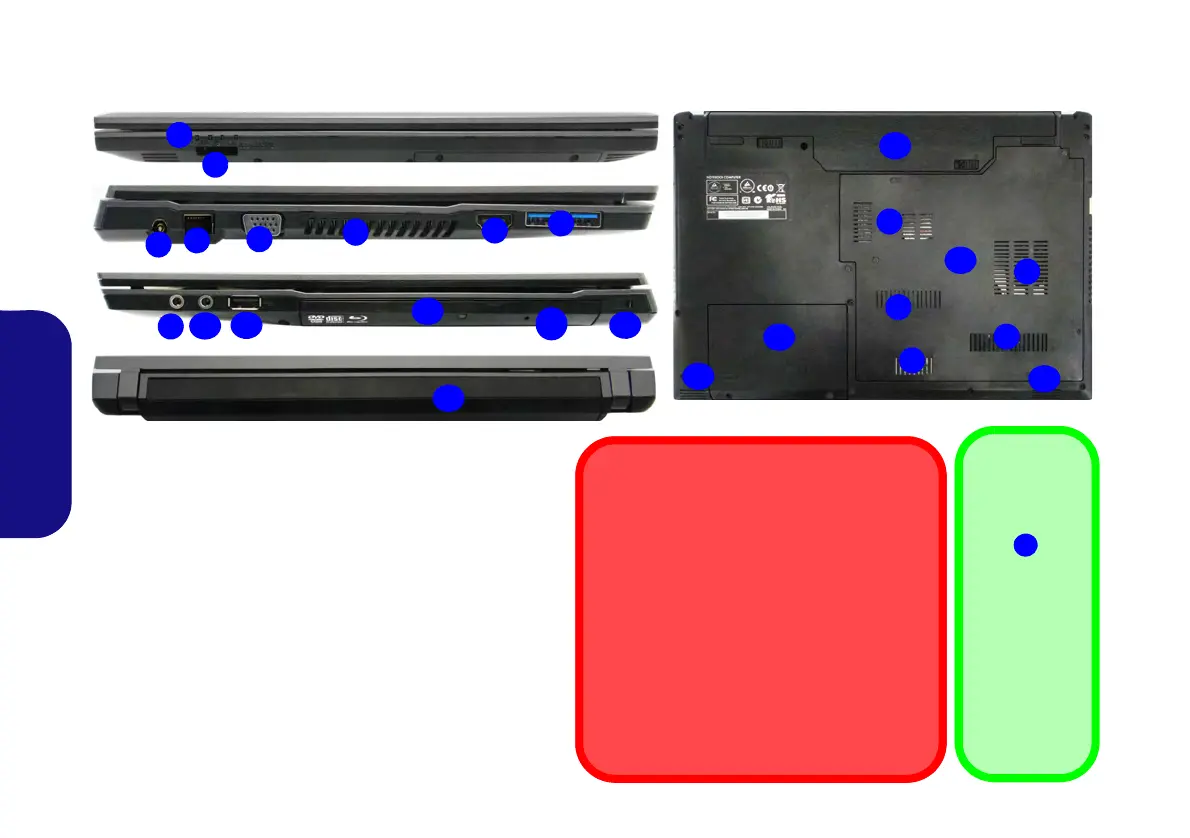 Figure 5 - Vues de face, gauche, droite, arrière & des-