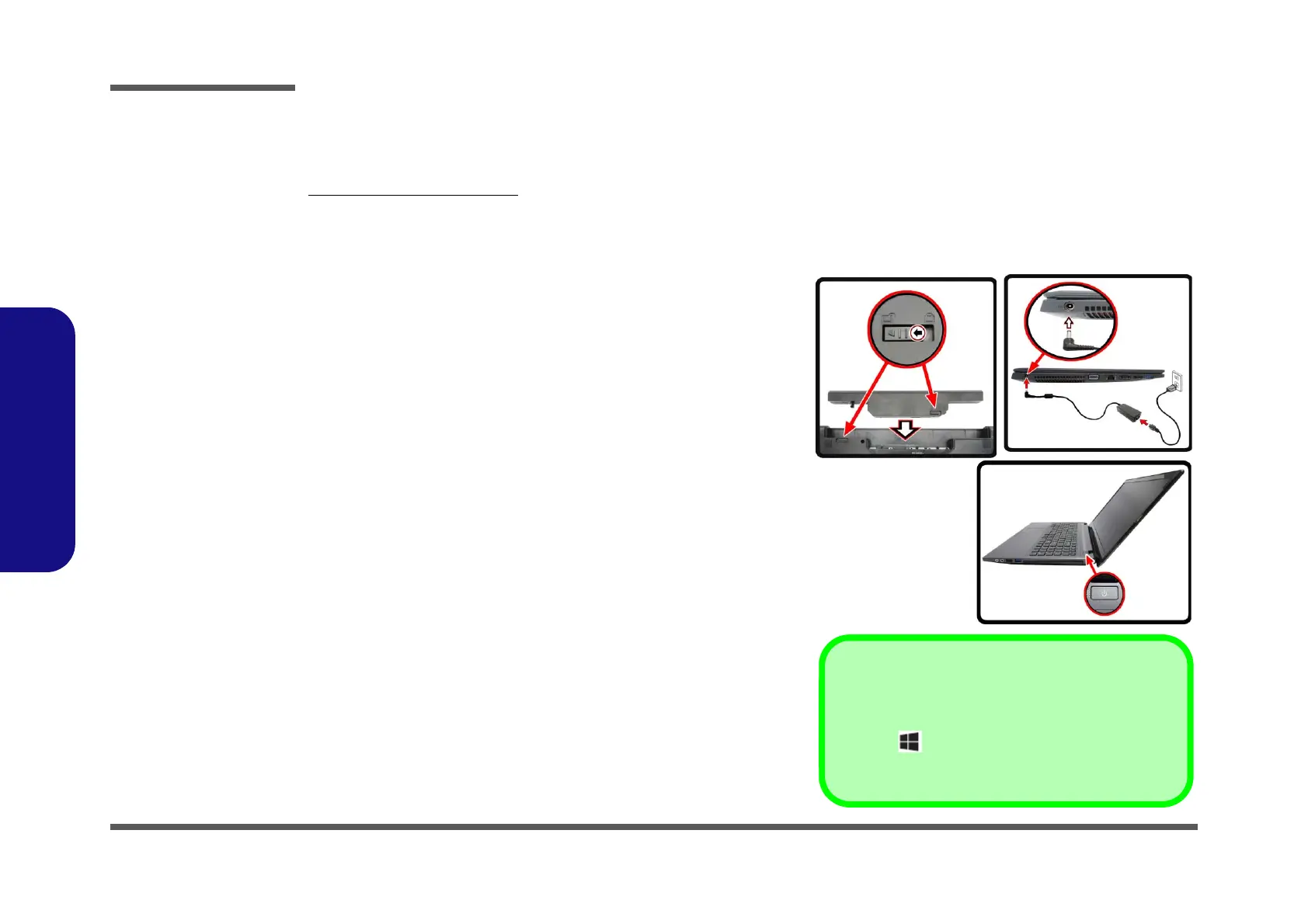 5. Attach the AC/DC adapter to the DC-In jack on the left of the