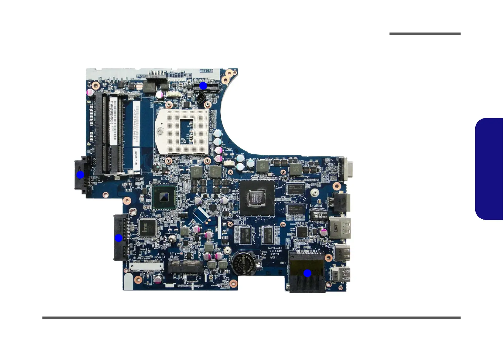 Clevo W650SR - Mainboard Overview - Bottom (Connectors)