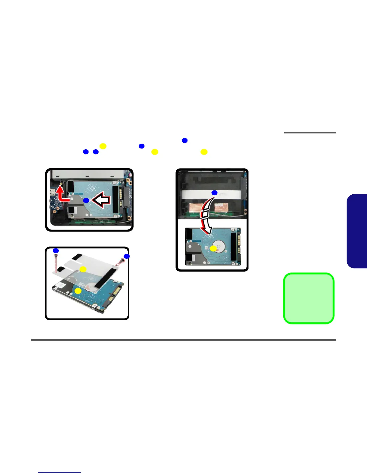 7. Remove the screws - and the adhesive cover from the hard disk