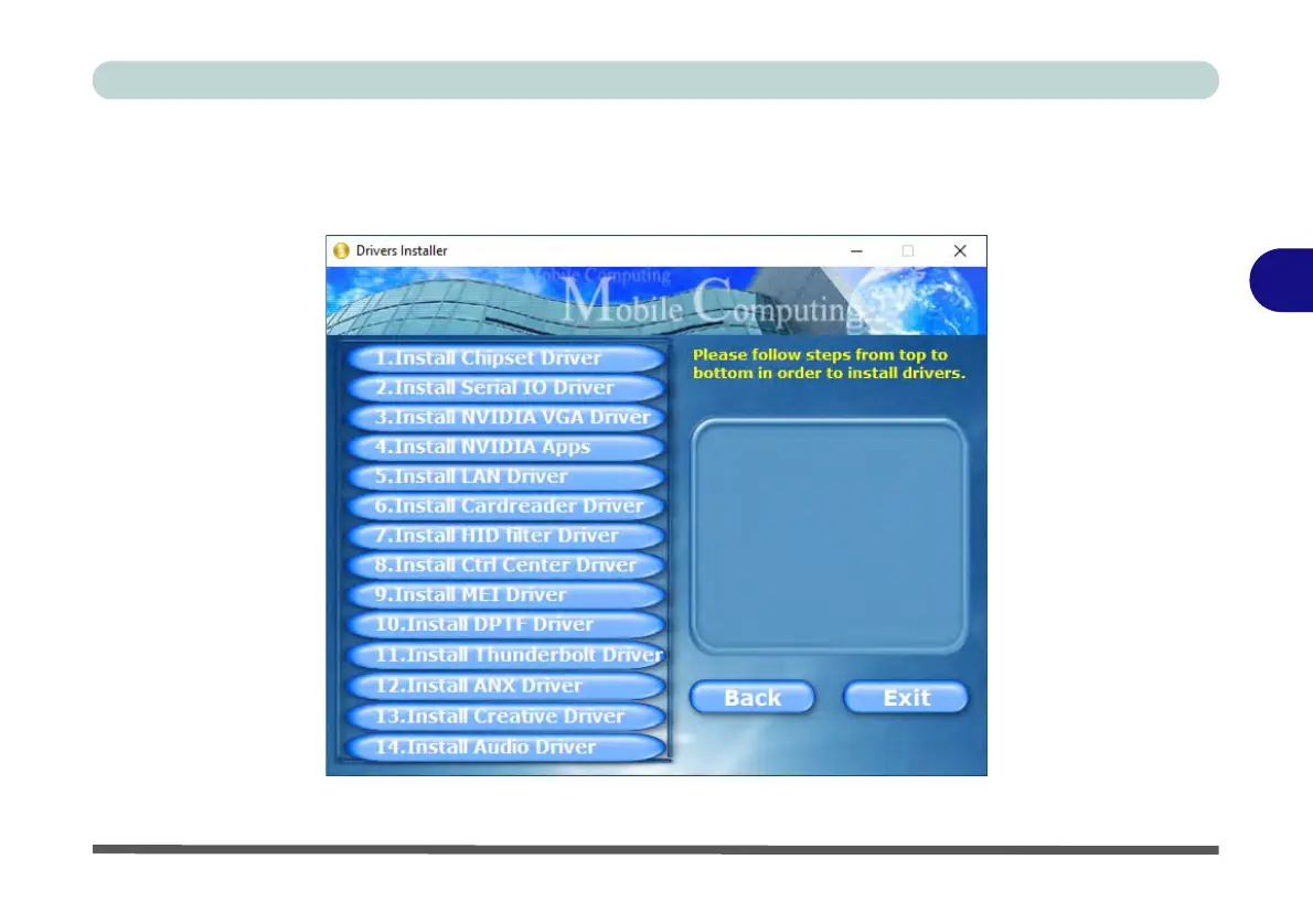 7. Follow the instructions for each individual driver installation procedure as listed on the following pages.