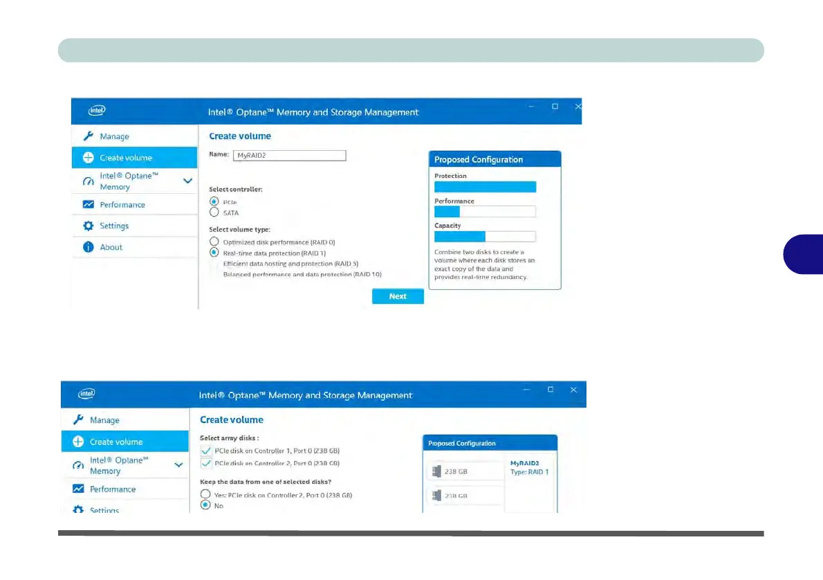 7. Type a name for the volume, select PCIe, and then select the volume type (RAID