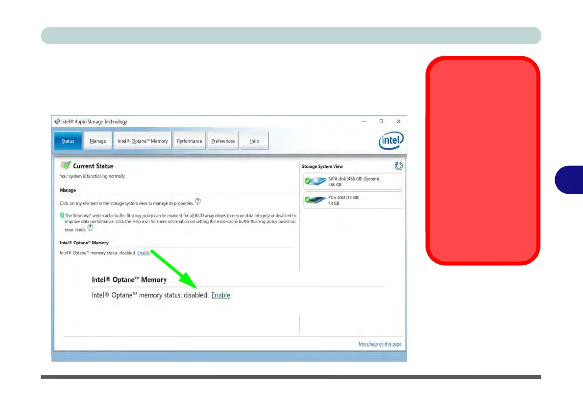 6. The Status of Intel® Optane™ Memory is indicated in the Window.