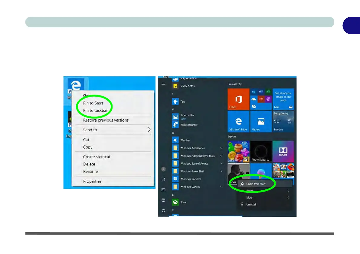 Figure 1 - 13 - Pin to Start/Unpin from Start
