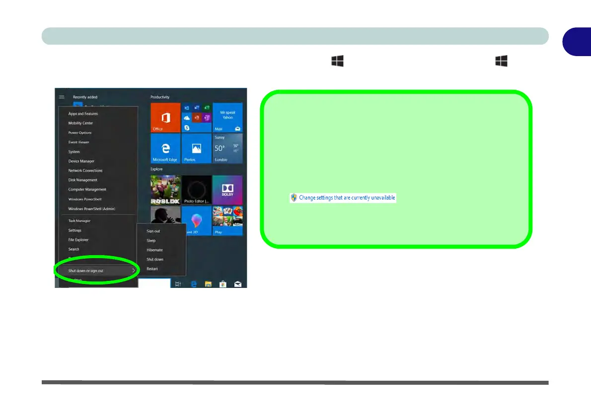 Figure 1 - 22 - Context Menu Shut Down or sign out