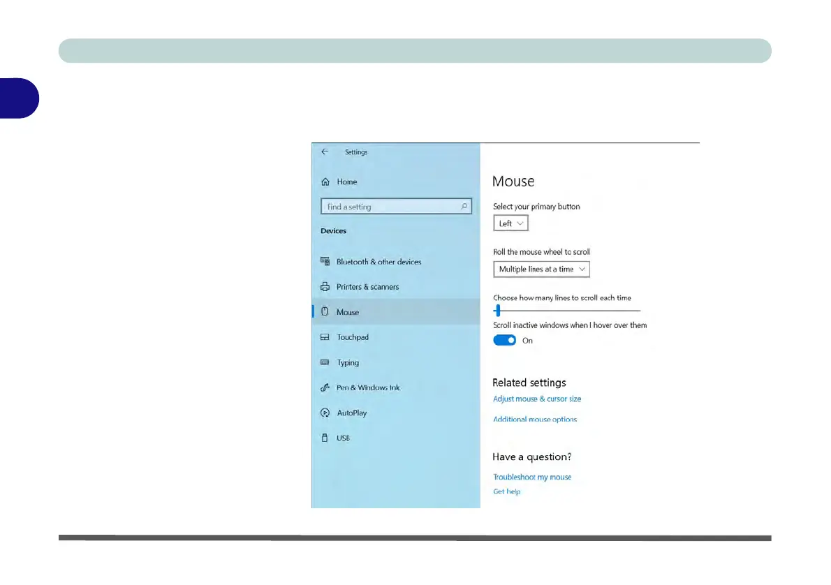 You can select the primary mouse button and scrolling options and access Mouse