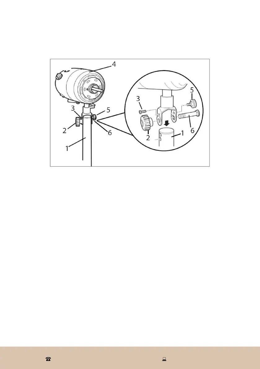 the telescopic stand, then remove the neck retaining screw (3) and small