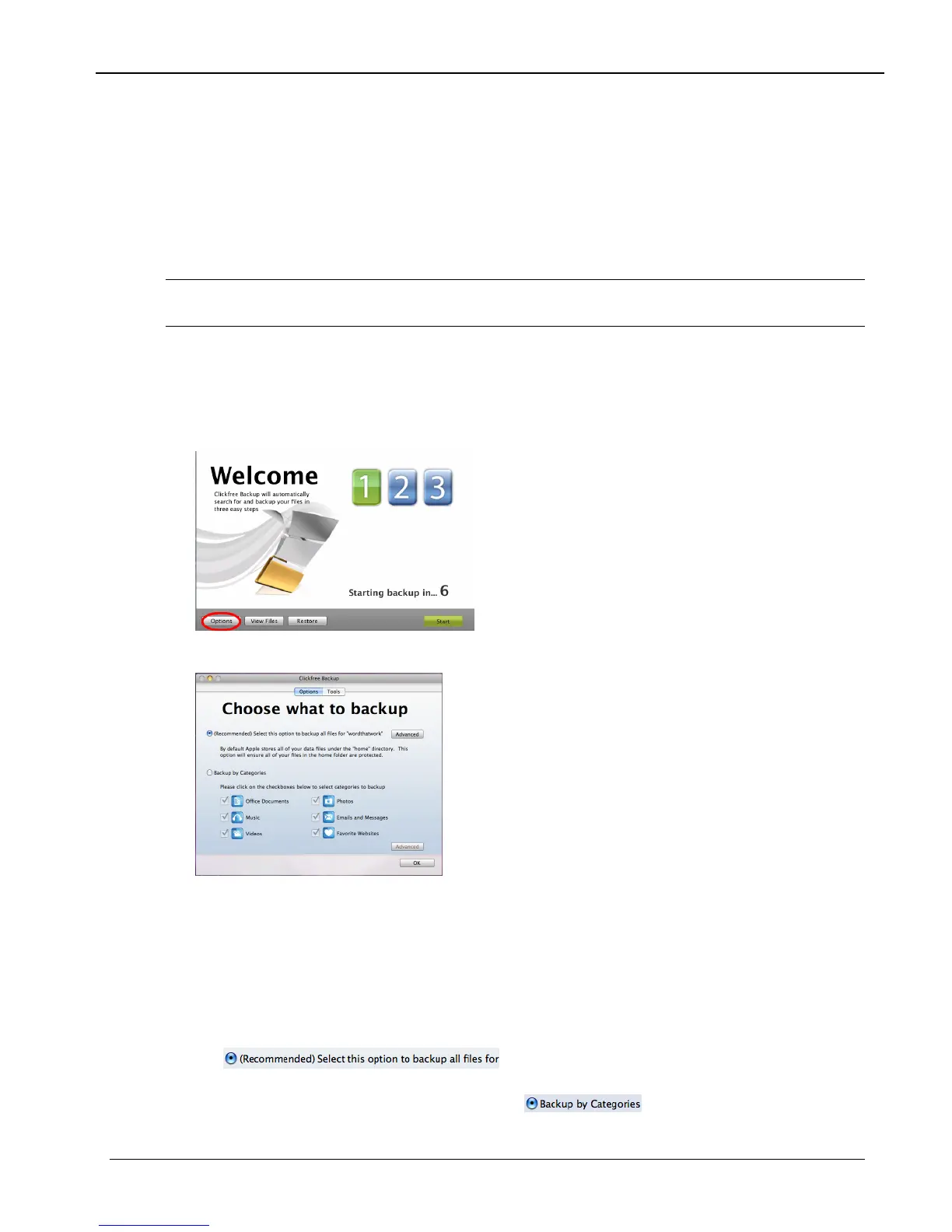 Clickfree Backup Drive for Macintosh: User Guide Backing up my content