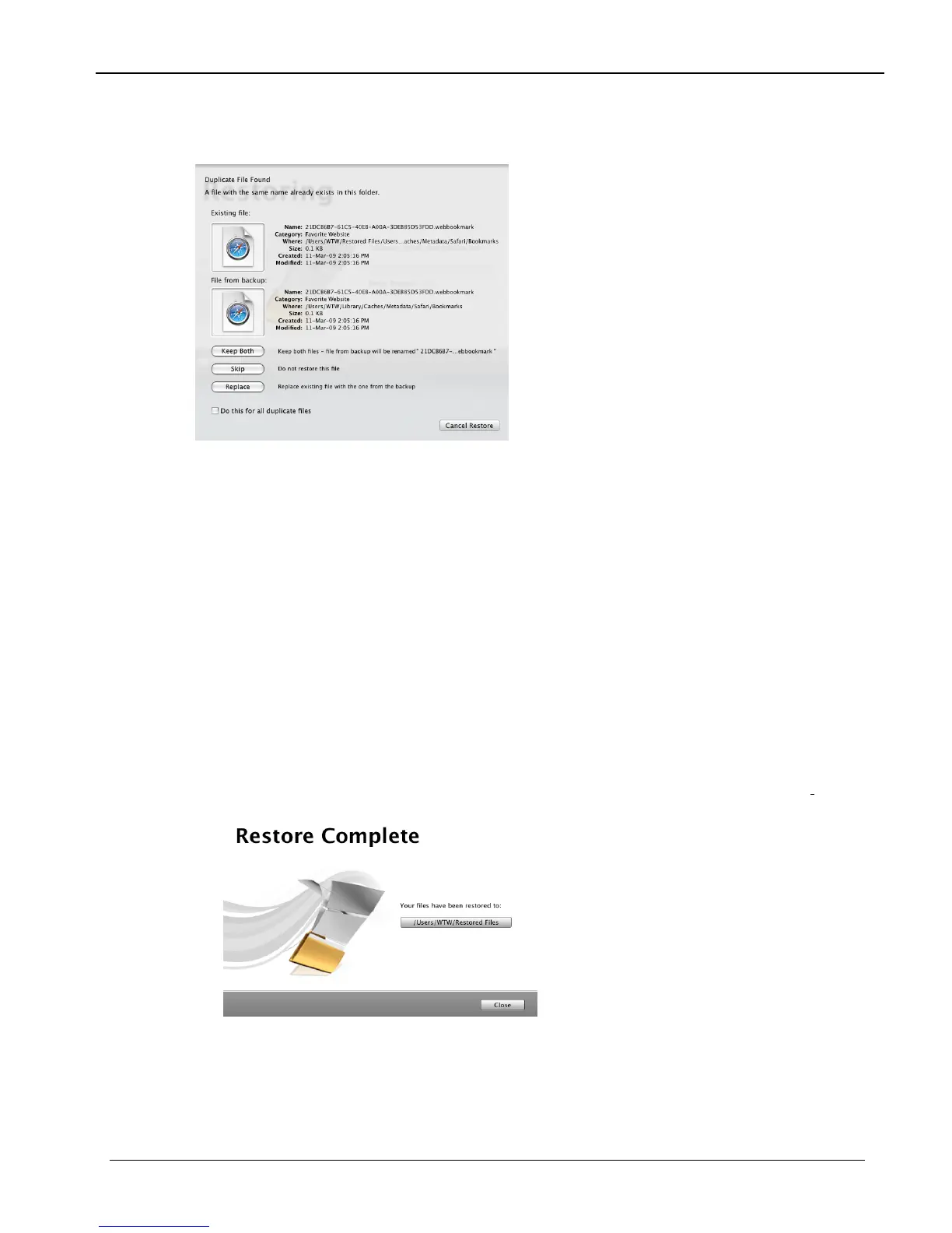 10. To open a Finder window at the restore folder, click the button below