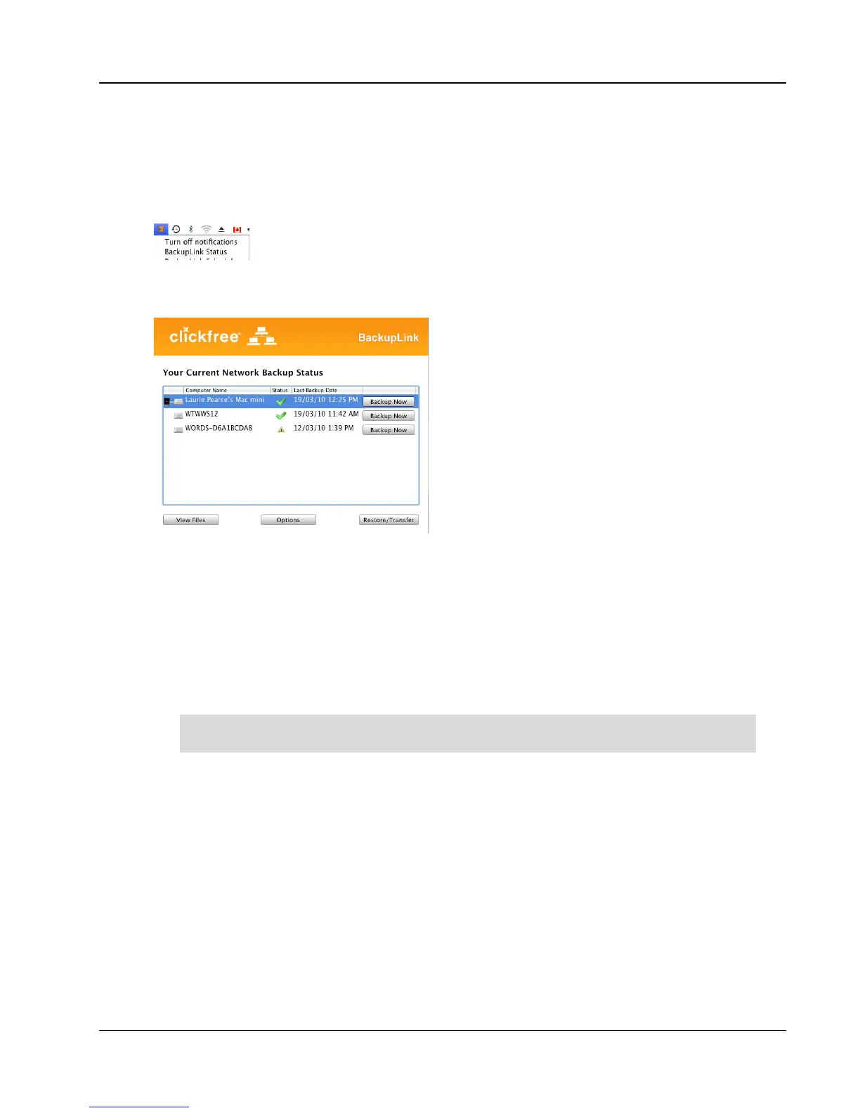 After the first backup on a computer, the Clickfree BackupLink utility is installed. You will