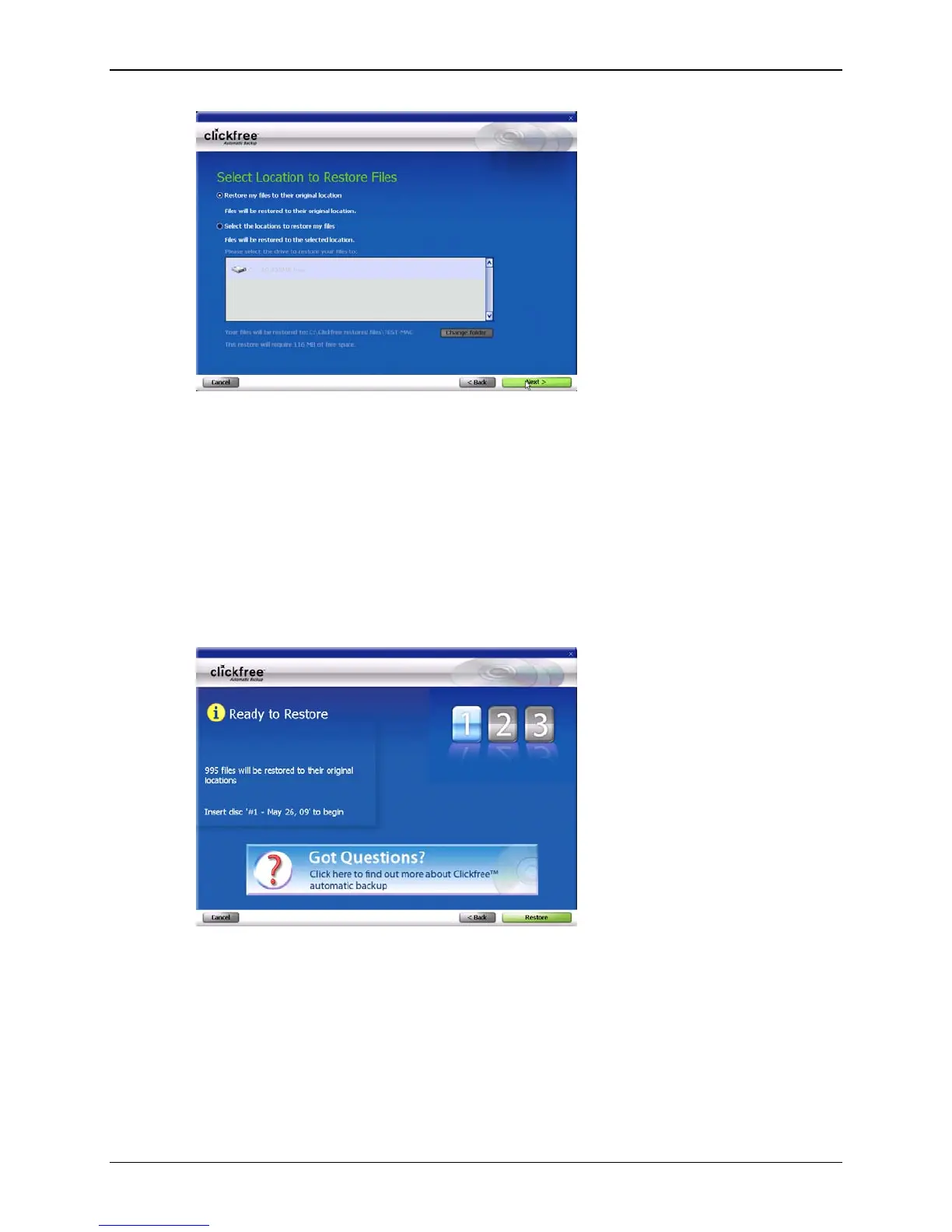 Clickfree C2N Home Backup Drive User Guide Restoring My Content (DVD)