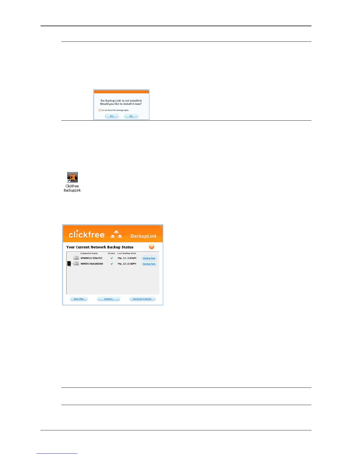 Note: If you later uninstall the BackupLink (e.g. if you will be running Clickfree on