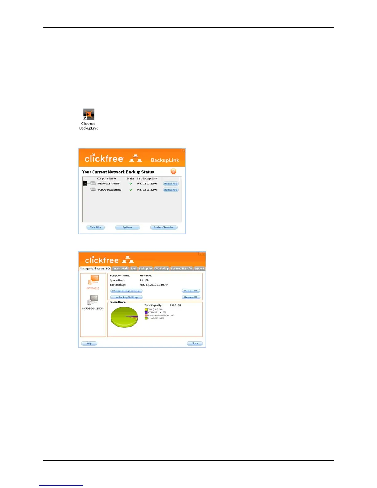 1. Double-click the icon on the desktop to open the BackupLink Status screen (or click