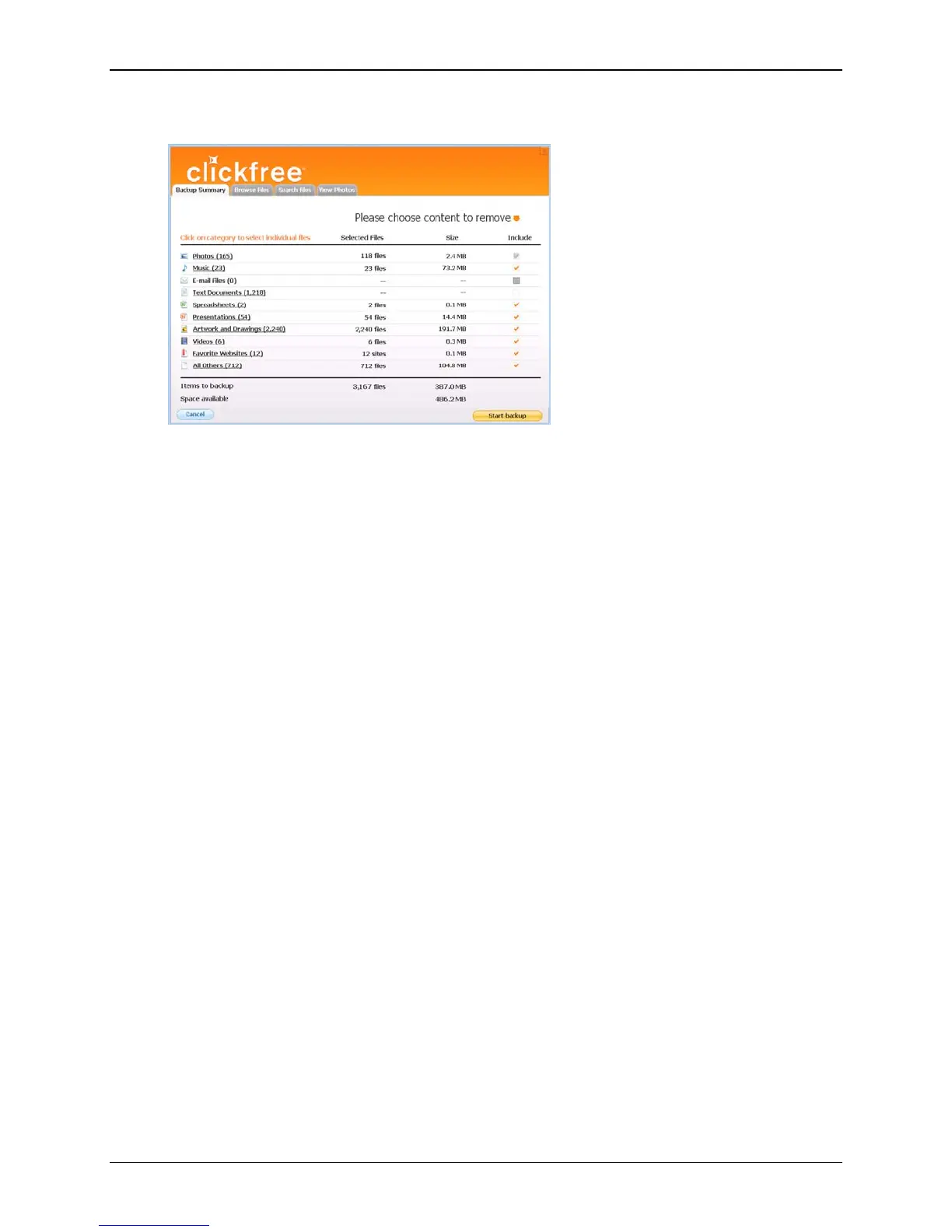 Clickfree C2N Home Backup Drive User Guide Backing Up My Content (HD)